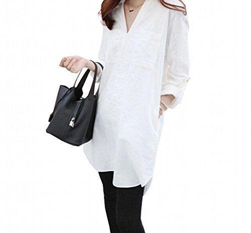マタニティ ワンピース シンプル 白 秋 冬 L XL XXL 大きいサイズ 産後 妊婦 (L)