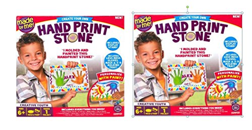 2 set of Create Your Own Hand Print Stone;Include Everything You need : 1 bag of plaster net, 1 Blister Mold, 1 Pair of Gloves, 1 Protective Mask, 1 Wood Stick, 1 Paint Strip, 1 Paint Brush and Stand;Great for Party Favors, Party Activity and Great gift idea for birthdays, parties, after school fun, summer projects and holidays;Create a timeless, personalized keepsake for mom, dad or your grandparents