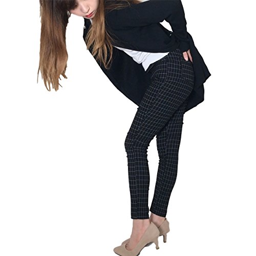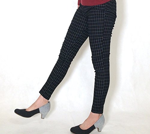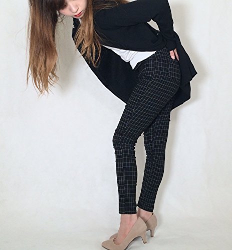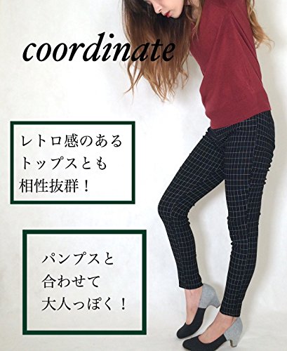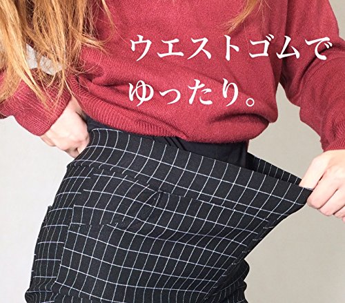(エムシービーエム) MCBM マタニティ パンツ 美脚に魅せる シリーズ ストレッチパンツ 伸縮性 ウエストゴム 調整可能 ブラック チェック柄 (M)