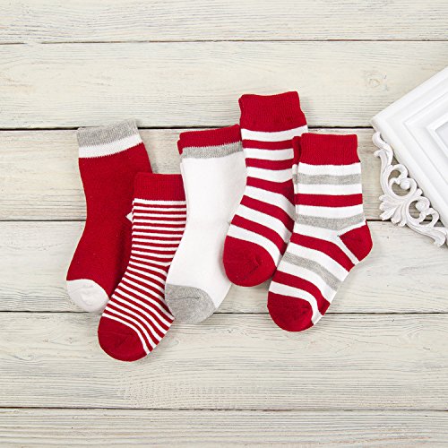 【 5足セットで 嬉しい 消耗品 】 MCBM ジュニア ソックス 靴下 キッズ 子供 幼児 赤ちゃん 男の子 女の子 用 保育園 幼稚園 プレゼント (レッド 15-18㎝(4-6歳))