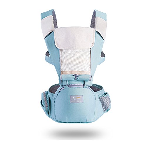 抱っこひも ベビーキャリア よだれカバー 新生児 スリング カバー ケープ 抱っこ紐 通気 夏用 メッシュ おんぶ紐 横抱き 収納 おんぶひも 昔ながら ガーゼ 臀部シット 6way (スカイブルー)