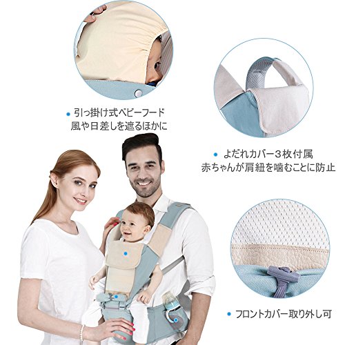 - 【心込めたデザイン】引っ掛け式ベビーフード、風や日差しを遮るほかに。取り外せるよだれカバー3枚、赤ちゃんが肩紐を噛むことに防止。フロントカバー取り外し可、内部はメッシュ生地が採用して、蜂の巣のような仕様をまねて、通気性と透湿性に優れ、春夏秋冬にも向いてます。