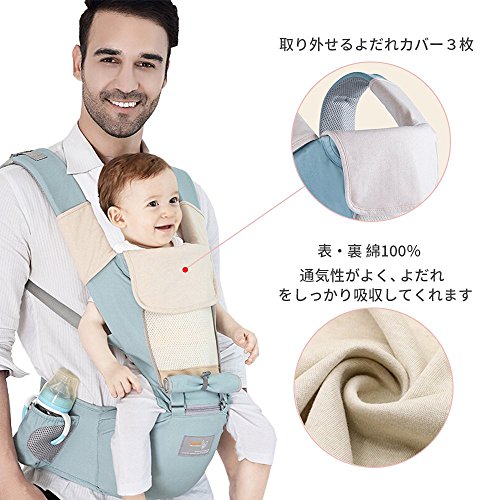 - 【心込めたデザイン】引っ掛け式ベビーフード、風や日差しを遮るほかに。取り外せるよだれカバー3枚、赤ちゃんが肩紐を噛むことに防止。フロントカバー取り外し可、内部はメッシュ生地が採用して、蜂の巣のような仕様をまねて、通気性と透湿性に優れ、春夏秋冬にも向いてます。