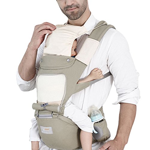 抱っこひも ベビーキャリア よだれカバー 新生児 スリング カバー ケープ 抱っこ紐 通気 夏用 メッシュ おんぶ紐 横抱き 収納 おんぶひも 昔ながら ガーゼ 臀部シット 6way (カーキ)