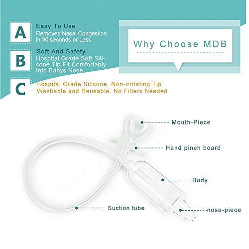 鼻吸い器, 0-36ヶ月の赤ちゃん、MDB鼻アスピレーター、使いやすい、病院グレード柔らかいシリコンのヒント、非刺激性の洗えると再使用可能、フィルター不要、衛生的なスノーサッカー [並行輸入品]