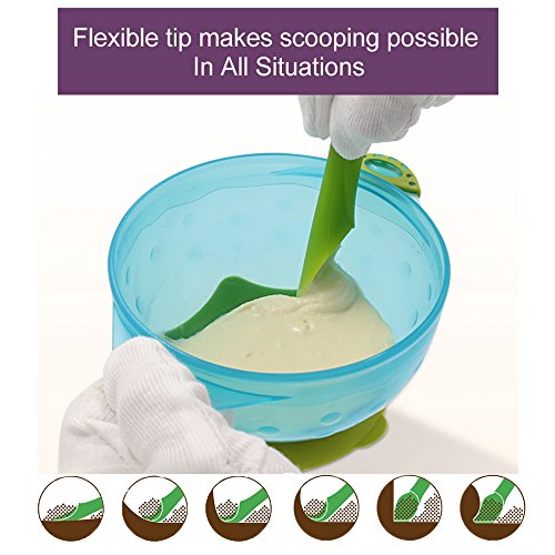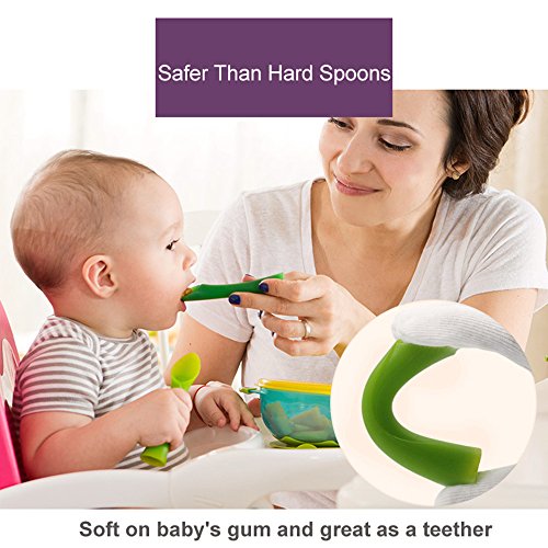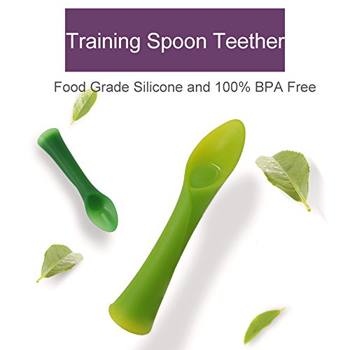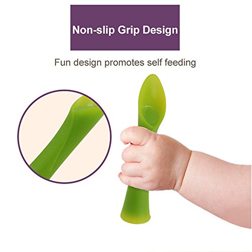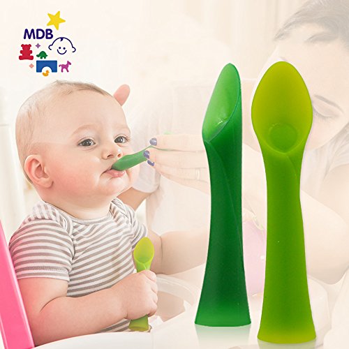 赤ちゃん訓練勺,ベビーレーンニングスプーン、MDB折り曲げ可能なベビーシリーコン給食スプーン-BPA自由で完璧な形、特に赤ちゃん用 (Light Green)