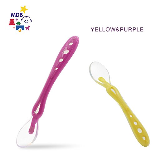 Baby Spoons, MDB Baby's Gum-Friendly First Stage Soft Tip Silicone Feeding Spoons for Babies - Great Infant Gift(Pack of 2,With Storage Box) - BPA, lead, phthalate and plastic free ((YELLOW&PURPLE))