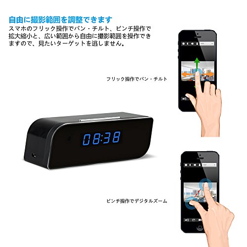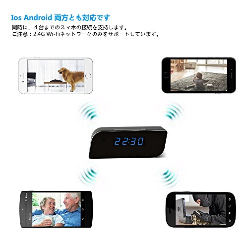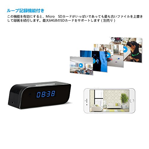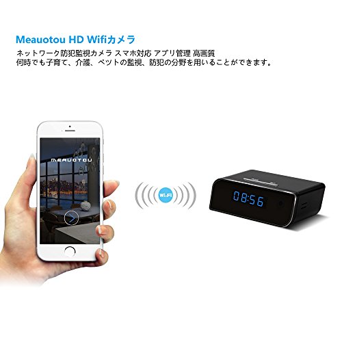 Meauotou 目覚まし時計型カメラ ネットワーク小型ビデオカメラ (スマホ対応/アプリ管理)【マイク内蔵/プッシュ通知/HD高画質/動体検知/循環記録スパイカメラ】ワイヤレス隠しカメラ/ベビーモニター(日本語説明書・APP) 最大64GBSDカード対応(別売り)