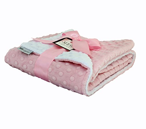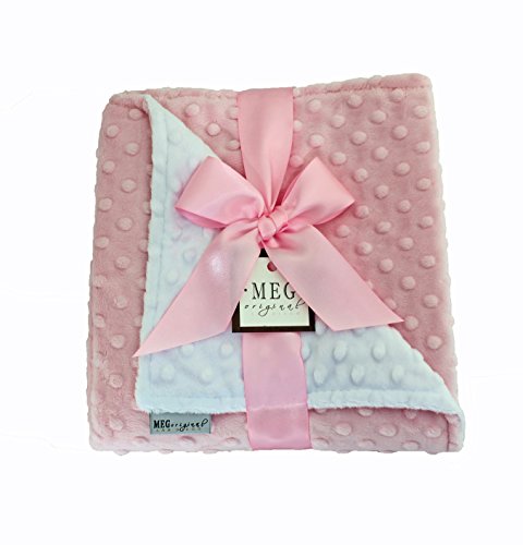 Heavenly soft minky dot blanket is reversible pink & white.;Measures 30 x 30 inches-- Perfect for snuggling into car seats and strollers.;Machine wash, Tumble dry.;Coordinating MEG Original bibs, & burp cloths available.;Proudly made in the USA.
