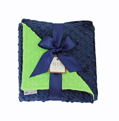 MEG Original Navy Blue & Lime Green Minky Dot Baby Blanket 972 by MEG Original