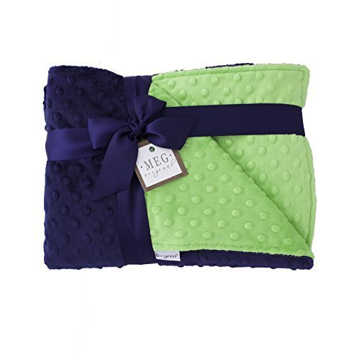 MEG Original Navy Blue & Lime Green Minky Dot Baby Boy/Toddler Crib Blanket 989 by MEG Original