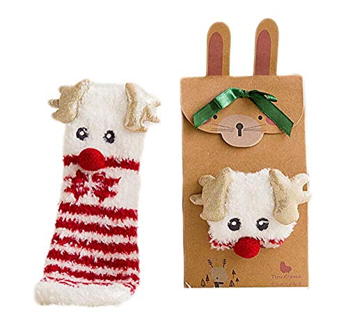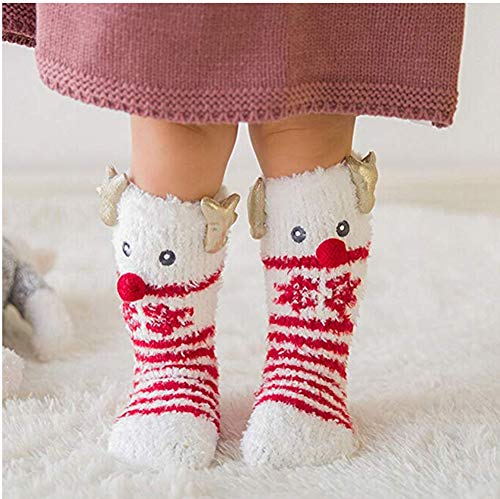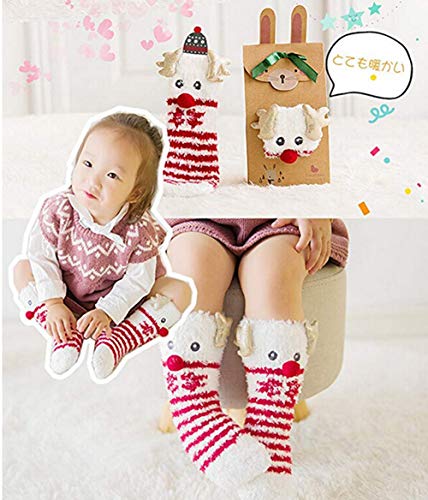靴下 ソックス温暖 ふわふわ もこもこ かわいい クリスマス 動物 可愛い 抗菌 防臭 プレゼント お祝い 贈り物 (レッド)