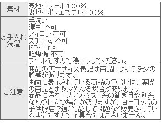 - 素材 表地 ウール100%、裏地 ポリエステル100%