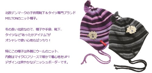 Stripe北欧デンマークの子供用靴下&タイツ専門ブランドMELTONのニット帽子。冬の長い北欧なので、帽子や手袋、靴下、タイツなど"あったかアイテム"がオシャレで使い心地もばっちり! 特にこの帽子は外側にウールのニット、内側はマイクロフリースで暖かで着心地をUP!デザインは爽やかなデニッシュボーダーです。 シンプルなボーダーはコーディネートも簡単です!ギフトにもどうぞ