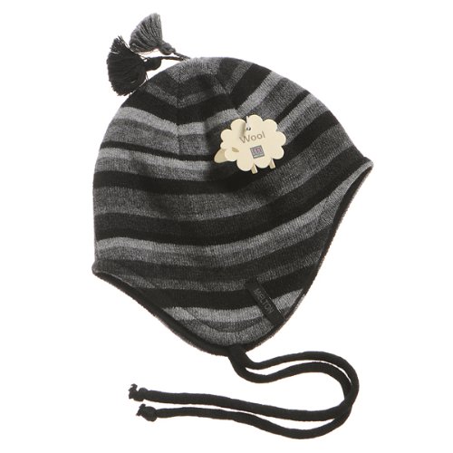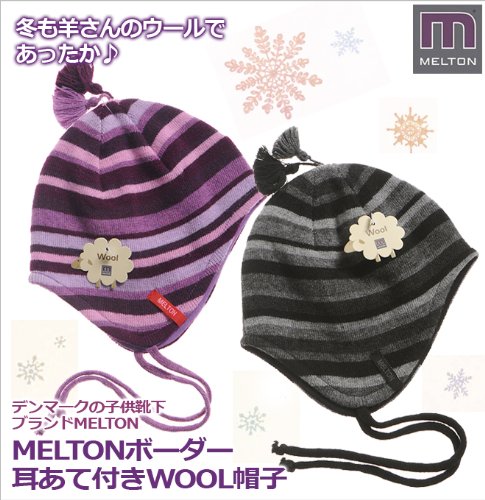 北欧デンマークの子供服ブランドMELTON ボーダー耳あて付きWOOL帽子 ブラック 6か月 - 9か月 6-9