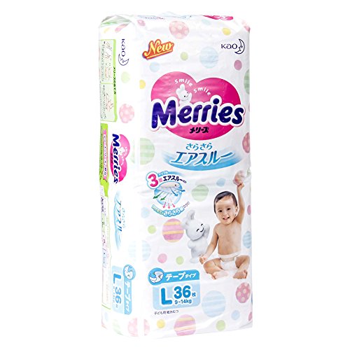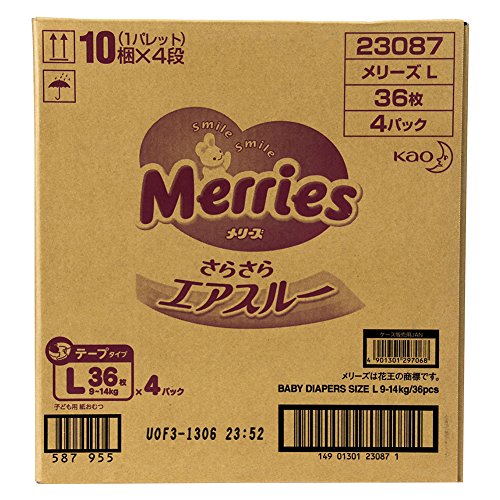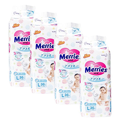 メリーズ 紙おむつ メリーズテープ Lサイズ 36枚入り 4個セット 花王 さらさらエアスルー テープタイプ 564647 Merries [並行輸入品]