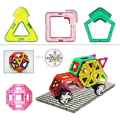 - 【想像力と空間視覚能力アップ】いろんな磁石ピースを組み立てる作業を通して、あなたのお子様の色彩感覚や形の認識、数の概念、論理性、頭のなかで立体を思い浮かべる空間認識力や、見えないものが見える図形のセンスなど「見える力」が養われることが出来ます。平面から立体を作ることで設計能力・創造力・空間視覚能力など、様々な能力の育成に役立ちます。