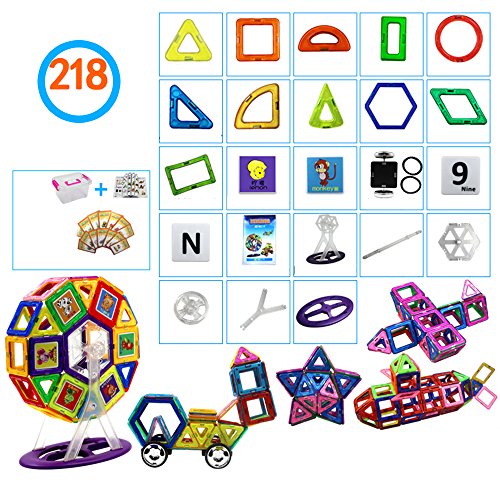 マグネットおもちゃ 子供プレゼント 磁石 おもちゃ 3d立体パズル 他の車輪・観覧車・ カラフル 磁気建設玩具 磁石付き積み木 幾何学認知 想像力と創造力を育てる 男の子 女の子 おもちゃ 入園 お祝い クリスマス プレゼント(豪華の218ピースセット)