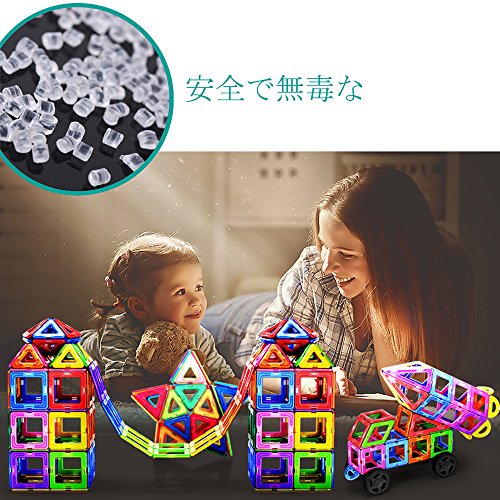 - 【高品質材質】安全な高品質のABS素材とマグネットで作られており、無毒無害で、幼児が舐めても心配ないです。プラスチック各辺の中央には強磁性のマグネットが内蔵されています。長時間経っても、磁力が弱くなりなく、有害物も発散しません。また、超音波処理により真空密封デザイン、永久の磁力片を持って、転んでも破れない。磁石が落ちにくくて、形も安定化する。、赤ちゃんの誤飲を防ぐ大きさ、各辺がアーチ形のデザインで、かすり傷なども避けられます。