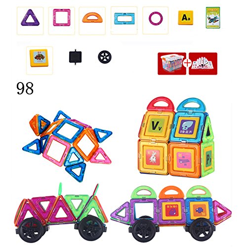 マグネットおもちゃ 知育玩具 子供プレゼント 磁石 おもちゃ 3d立体パズル カラフル 磁気建設玩具 磁石付き積み木 幾何学認知 想像力と創造力を育てる 男の子 女の子 おもちゃ 入園 お祝い クリスマス プレゼント(豪華の98ピースセット)