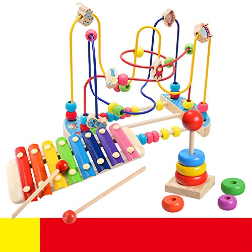 積み木 赤ちゃんおもちゃ ビーズコースター キッズ 木製 ルーピング おもちゃ 指先トレーニング ミニ サイズ スペース模様 色認知 出産祝い お誕生日プレゼント(3点セット)