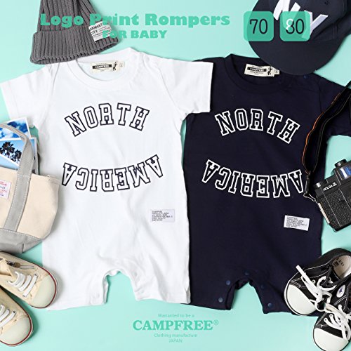 (キャンプフリー) CAMPFREE カレッジロゴ ロンパース 半袖 ベビー M.H.A.style 10188 A.ホワイト