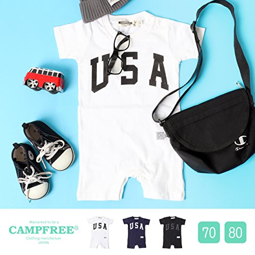 (キャンプフリー) CAMPFREE カレッジロゴ ロンパース 半袖 ベビー M.H.A.style 10187 B.ネイビー
