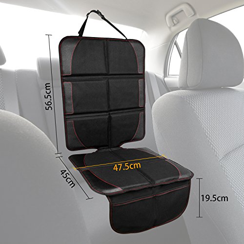 - 【安心なグッズ】耐久性高い600Dポリエステルと滑り止めPUで作られ、クッション性と厚みがあり、痕は軽減できます。ラバー製の滑り止め、デザインがシンプルなので車のインテリアの雰囲気を壊さない。自動車、SUV、小型トラックなどほとんどの後部座席に適合するチャイルドシートマットです。