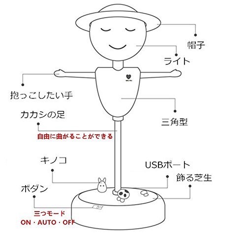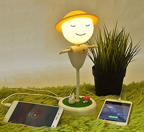 LED ベッドサイドランプ テーブルランプ デスクライト電球色 調光可能 USB充電ポート搭載 卓上スタンドカカシ形人型誘導スモールナイトライト子供の夜の光 子供フレキシブルツイストかかし LED ソフトライトベッドサイドテーブルランプ振動センサー w/2 電話充電用 USB インターフェイス