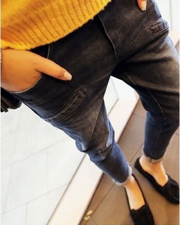 マタニティ ストレッチ デニム パンツ 伸縮素材 ファッション ジーンズ ジーパン (XLサイズ)
