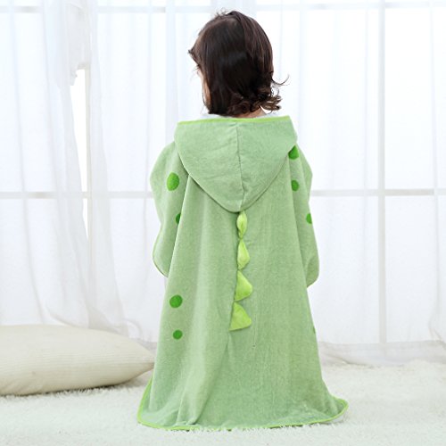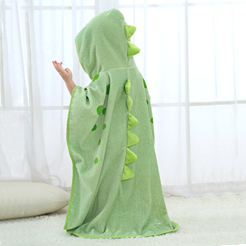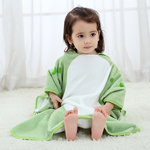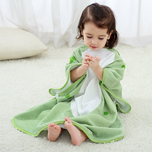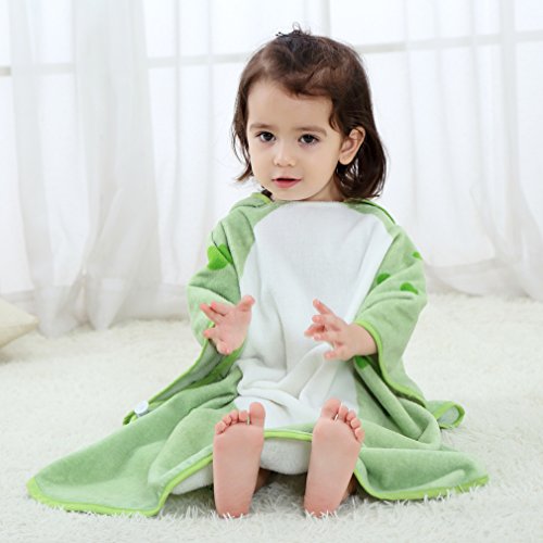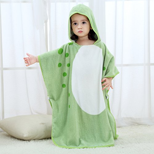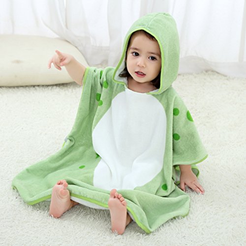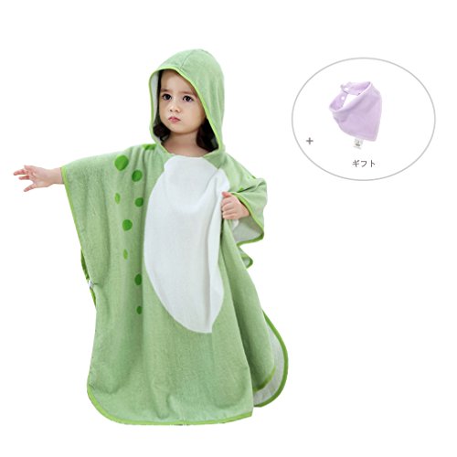 フード付き タオル キッズ バスタオル 動物柄 ポンチョ タオル ベビー (グリーン)