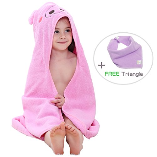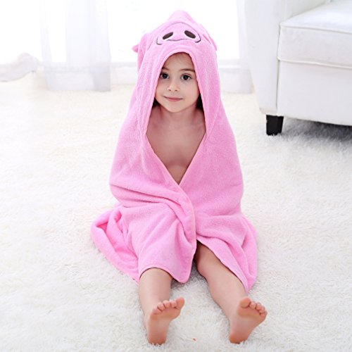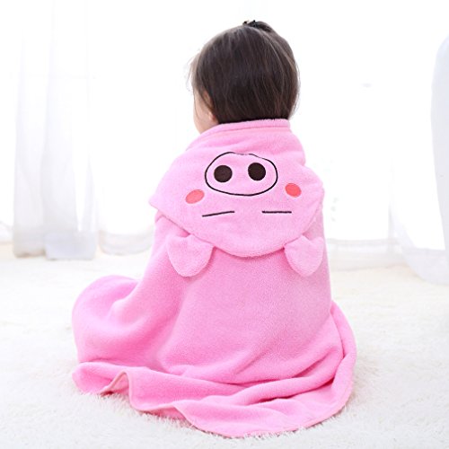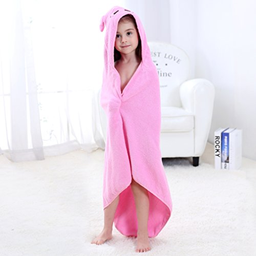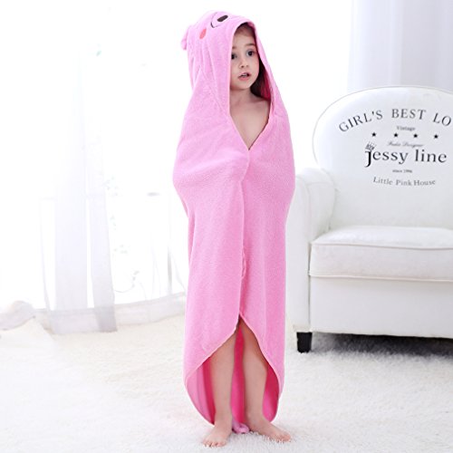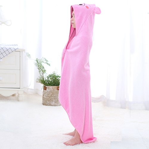 MICHLEY ッズ 可愛动物い フード付きバスタオル マント バスローブ ポンチョ おくるみ 寝袋 プールビーチ 冷房 対策 出産お祝い ギフト (ピンク)