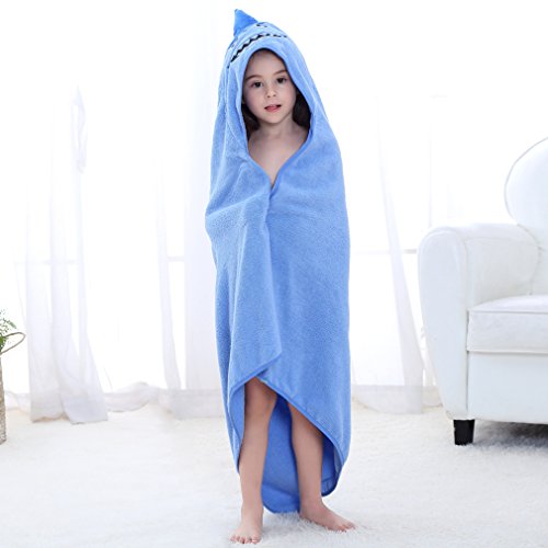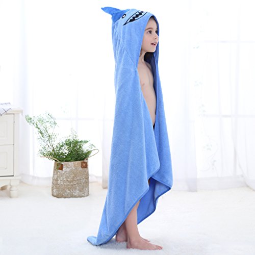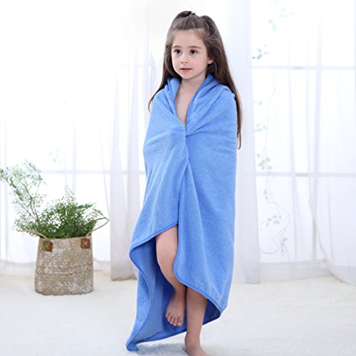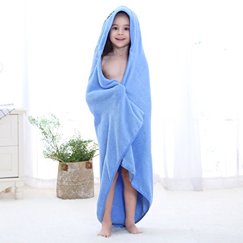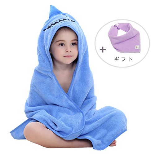 MICHLEY 子供 フード付き タオル ベビー バスローブ 出産祝 ギフト男の子 女の子 ポンチョ タオル 0-5歳(ブルー)