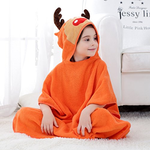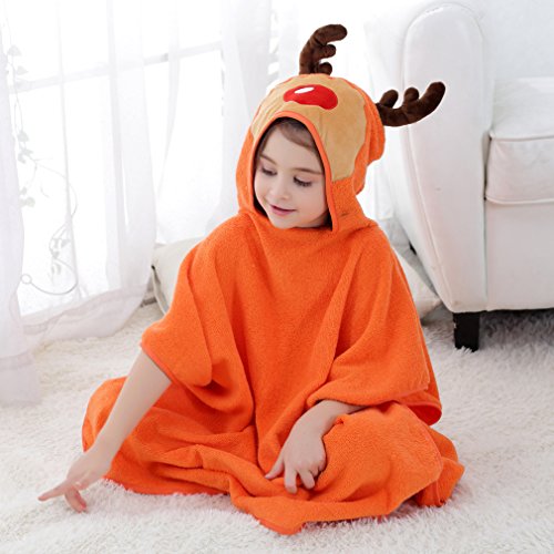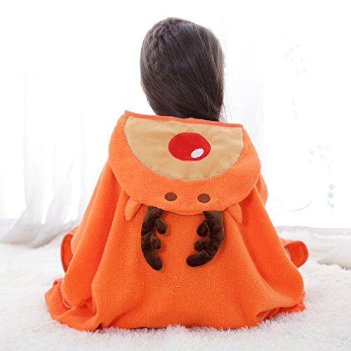 MICHLEY フード付きバスタオル ベビー 動物 バスローブ 新生 男の子 女の子 出産祝(オレンジ)
