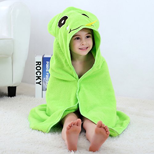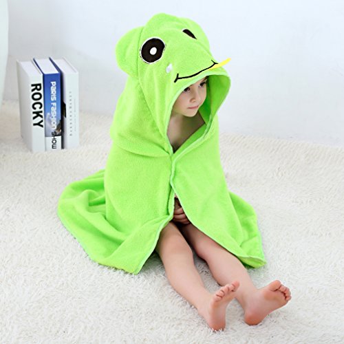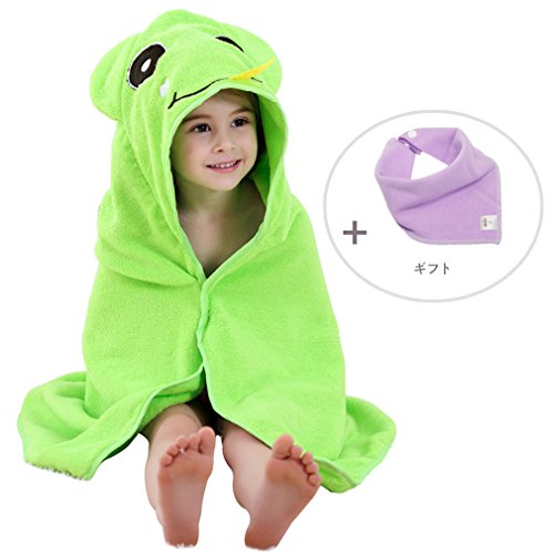 MICHLEY ベビー バスローブ 男の子 女の子 動物柄 ポンチョタオルフード付きバスタオル 0-5歳(グリーン)
