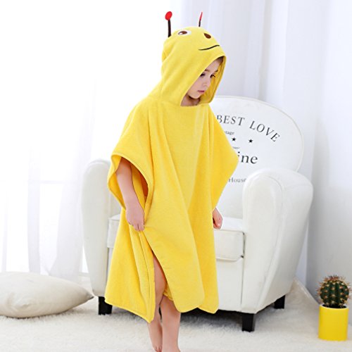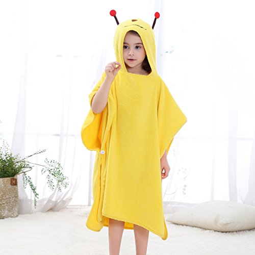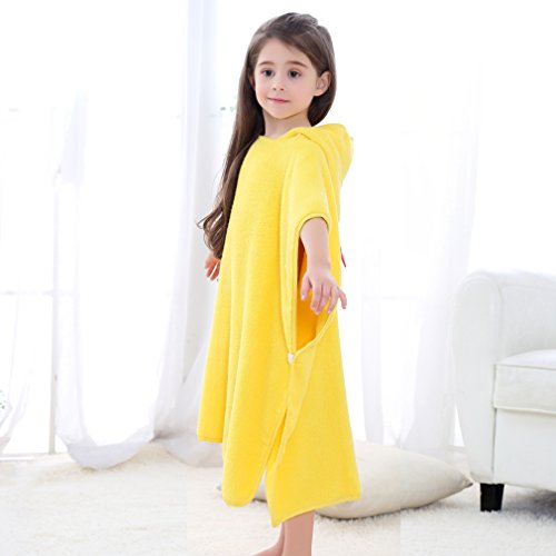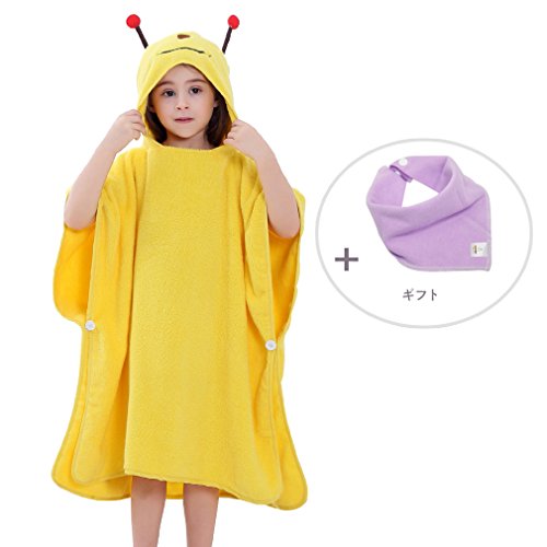 MICHLEY 子供 お フード付き バスローブ 男の子 女の子 動物柄 ポ ベビー バスローブ 可愛い おくるみ ベビー バスローブ 0-7歳(イエロー)
