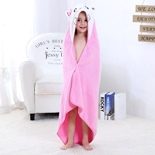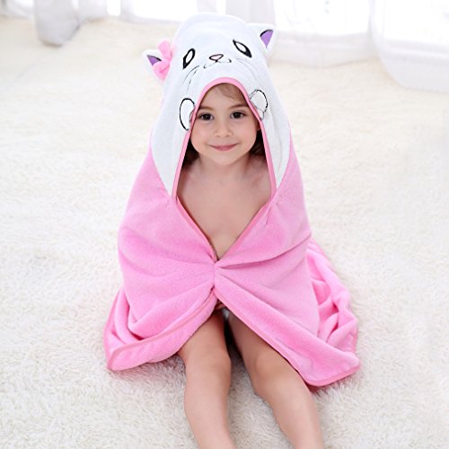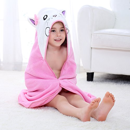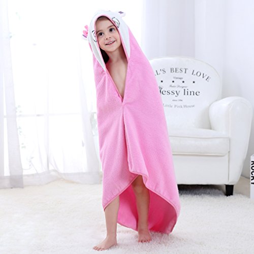 MICHLEY ベビー バスローブ男の子女の子動物柄 ポンチョタオルフード付きバスタオル 0-5歳(ピンク)