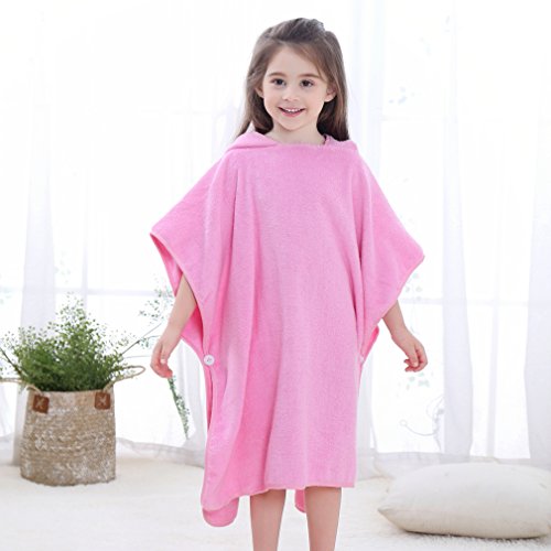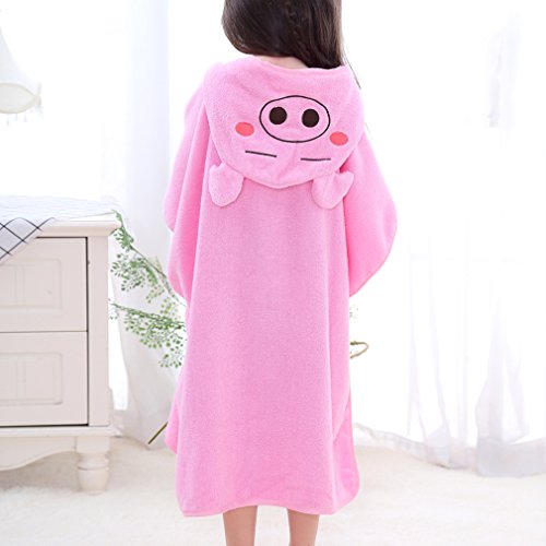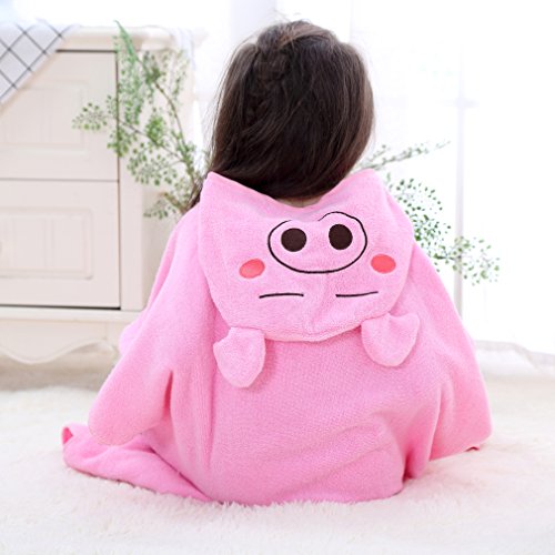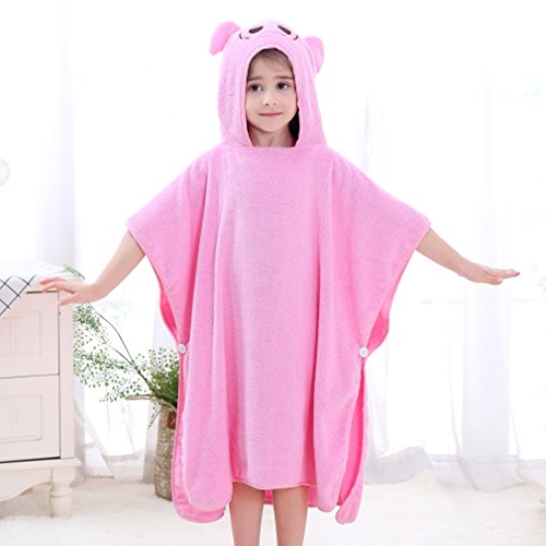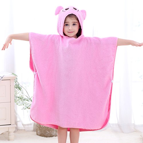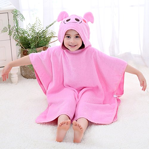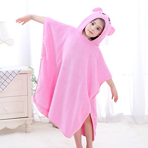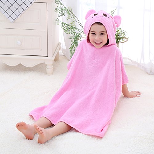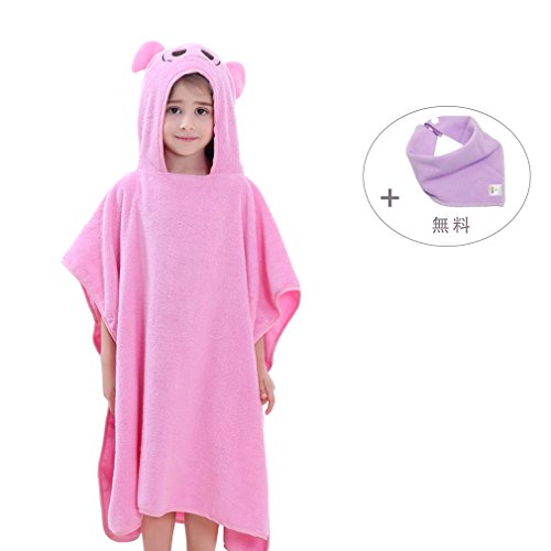 ベビー キッズ 子供 バスタオル ビーチタオル スイミング 動物柄 ポンチョ型 フード付き (ピンク)