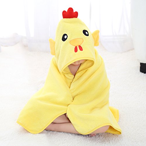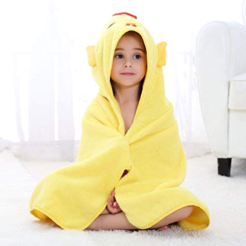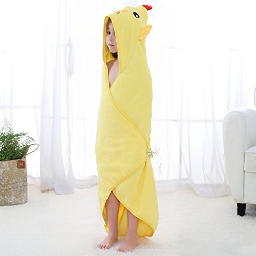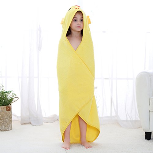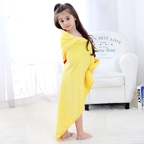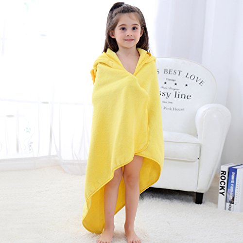 MICHLEY 子供 フード付き タオル ベビー バスローブ 出産祝 ギフト男の子 女の子 ポンチョ タオル 0-5歳(イエロー)