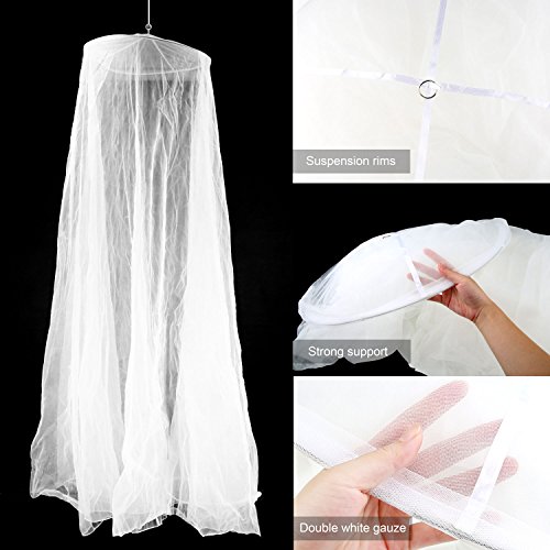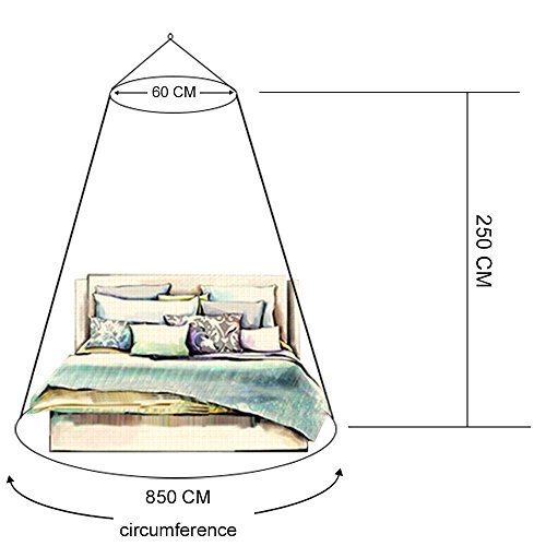 - 蚊帳のサイズ:60cm * 250cm * 850cm(リングの直径*高さの円周)。