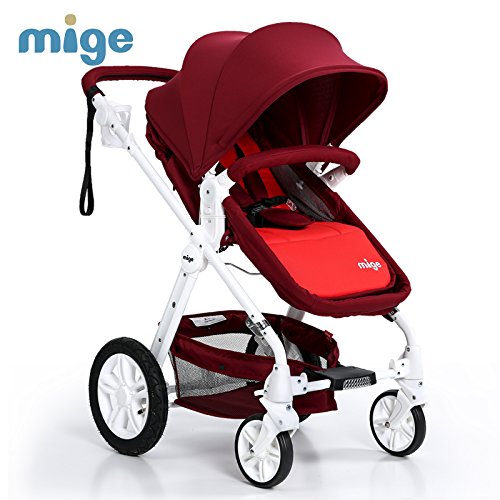 Mige 高い景観ベビーカー, 幼児乳母車, あなたが座ったりうそことができます, 空気圧ホイール, SGS/TUV/CCC認証 (RED)