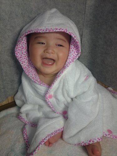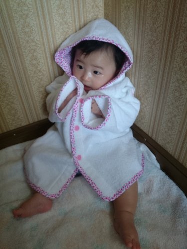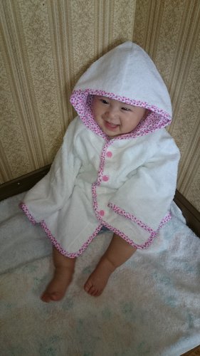 - 0歳から3歳くらいまで幅広く使えるバスローブです。