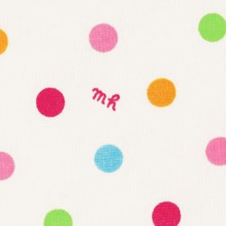 カラフルなドット模様がキュートな長袖Tシャツ、ハートのワンポイントが入った