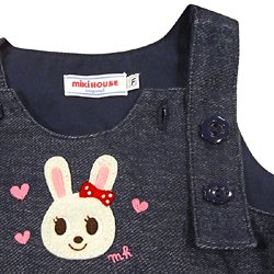 うさこの刺繍が付いたデニム調のジャンパースカートと