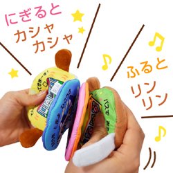 かわいいビーズ入りの音や、カシャカシャの感触が楽しめますよ。