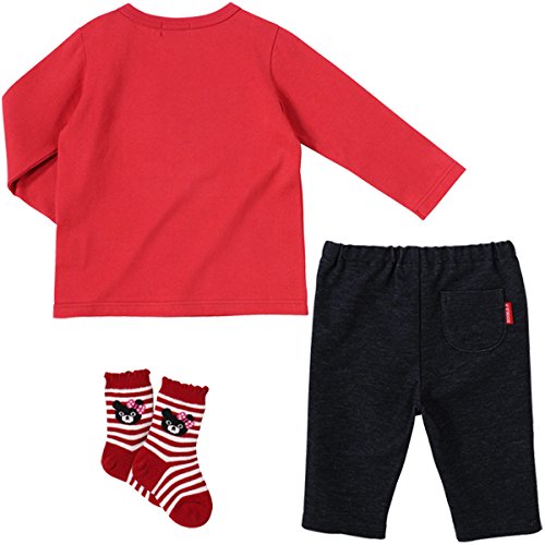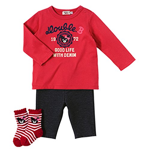 ダブルB(mikihouse) カレッジロゴ風長袖Tシャツ+8分丈パンツ+ソックス 3点ギフトセット 赤(02)