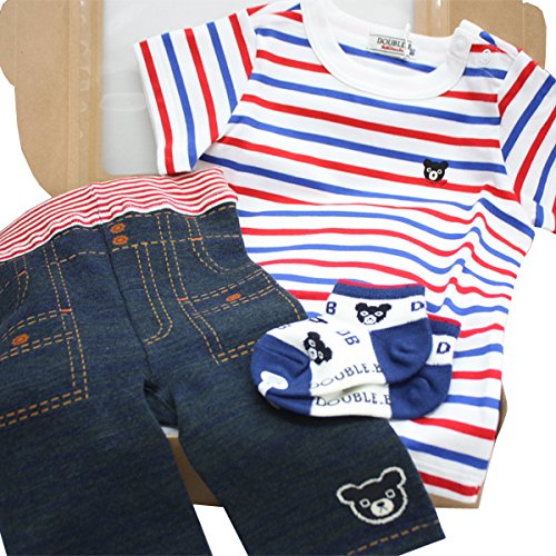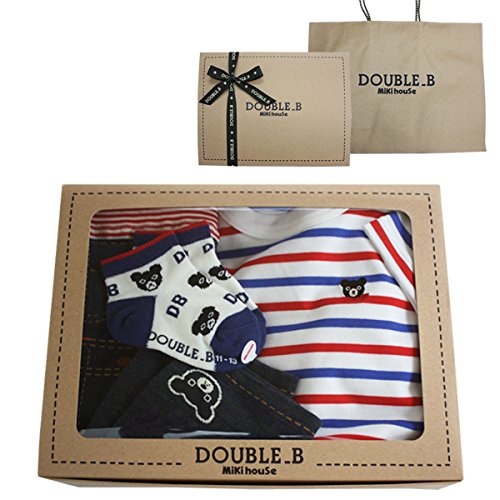 ダブルB (mikihouse) 半袖Tシャツギフトセット (80cm・赤×紺)(リボンラッピング包装済)