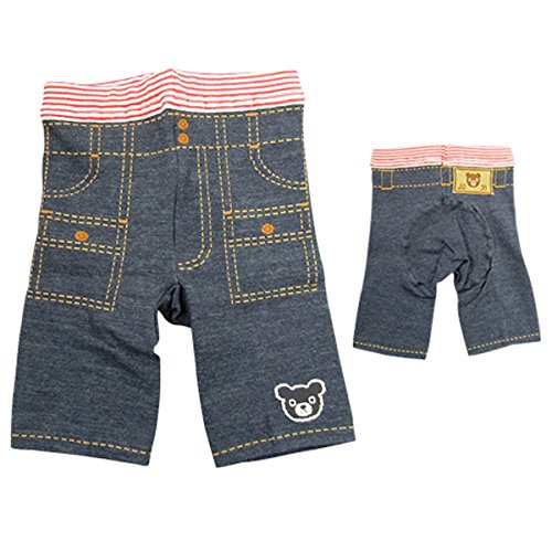 スパッツは8分丈で伸縮性があって肌触りのいい、こだわりの素材を使っています。 モンキーパンツ風でお子様のおしりをすっぽり覆うように工夫されています。