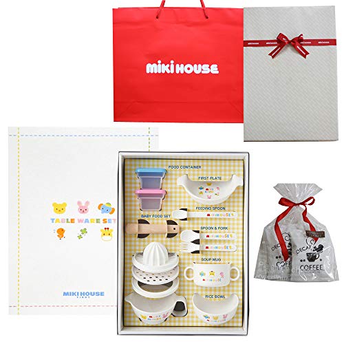ミキハウス出産祝いベストセラーの「食器set」とカフェイン残留率0.1%以下の「オリジナルデカフェ」がセット(2個)になりました。