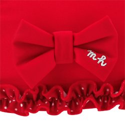 「mh」のラメ刺繍が入った、リボンがアクセントになっています☆